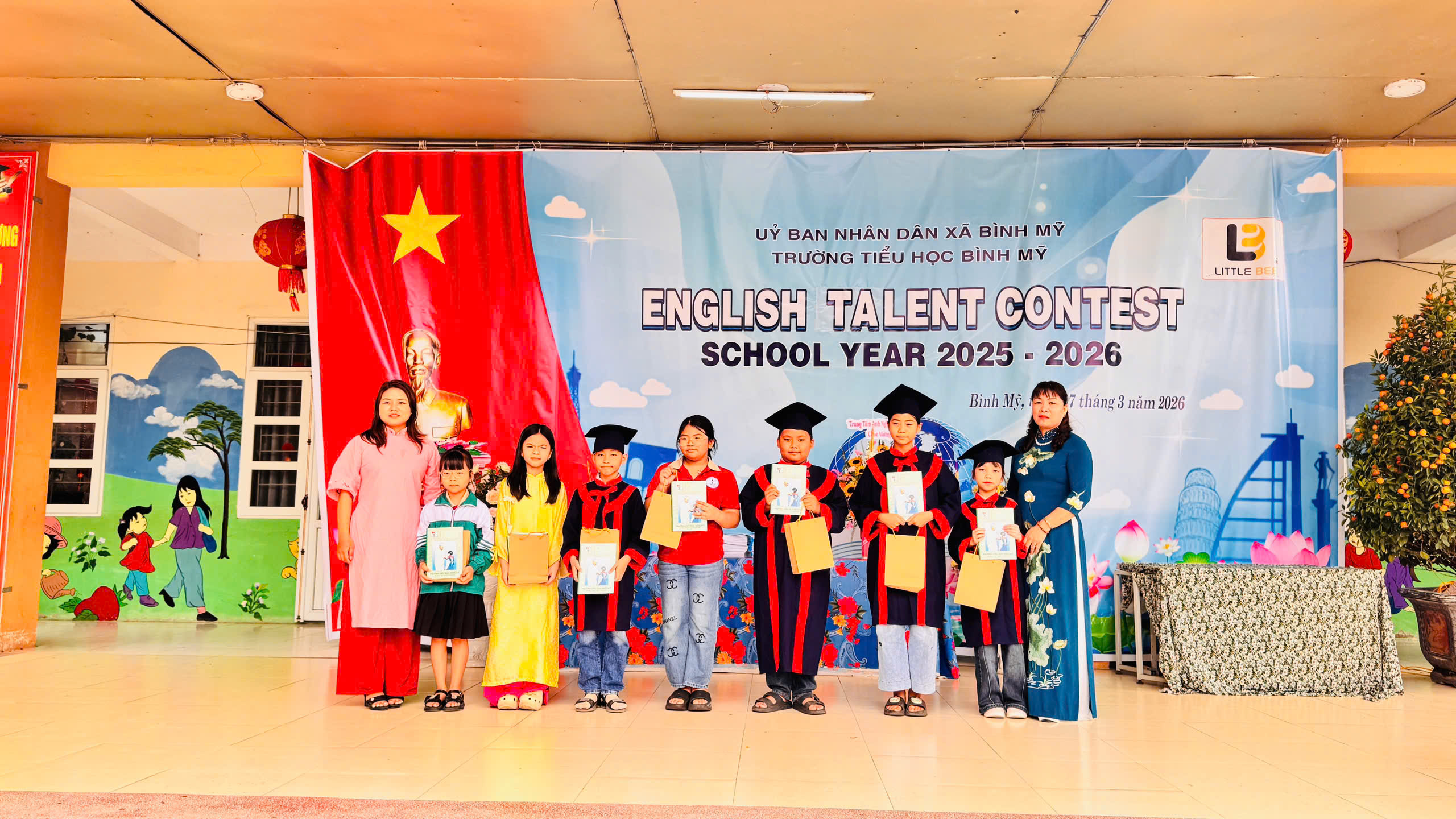 Ngày 07/03/2026, trong không khí hào hứng và tràn đầy năng lượng, trường Tiểu học Bình Mỹ đã tổ chức thành công rực rỡ cuộc thi “English Talent Contest School Year 2025 – 2026”. Đây không chỉ là một sân chơi học thuật mà còn là ngày hội để các em học sinh tự tin khẳng định tài năng và tình yêu với ngôn ngữ toàn cầu.