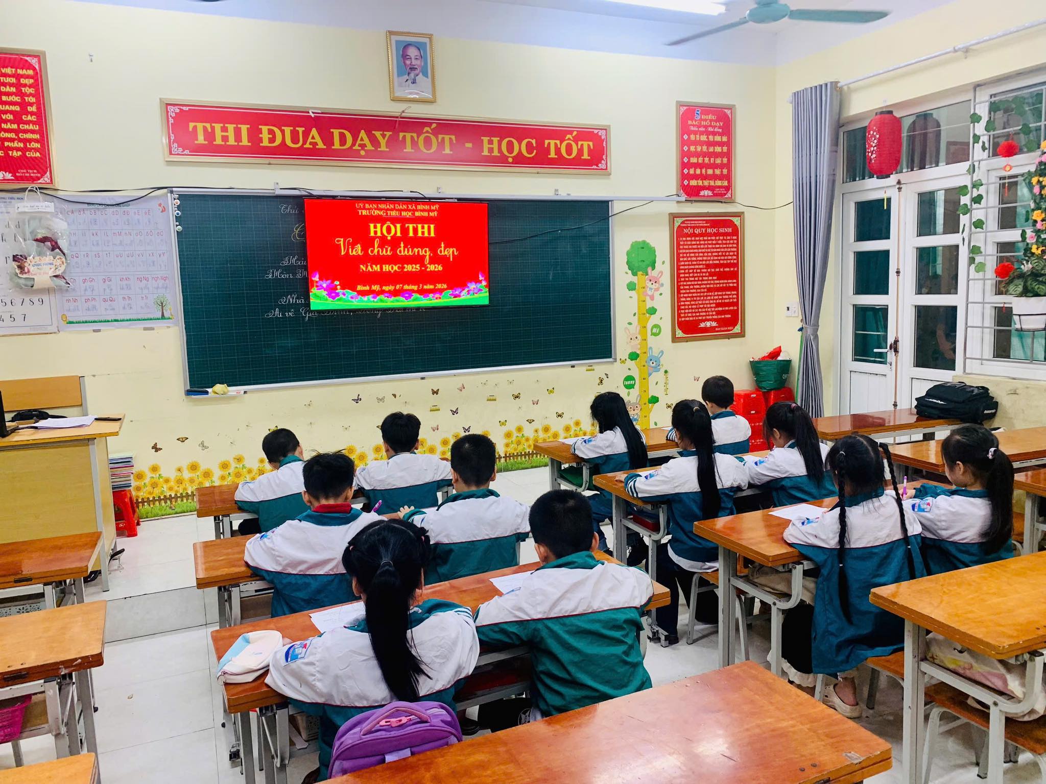 Sáng ngày 07/3 không khí tại Trường Tiểu học Bình Mỹ trở nên rộn ràng và đầy cảm xúc hơn bao giờ hết với Hội thi Viết chữ đúng, đẹp dành cho các thầy cô giáo và các bạn học sinh thân yêu!