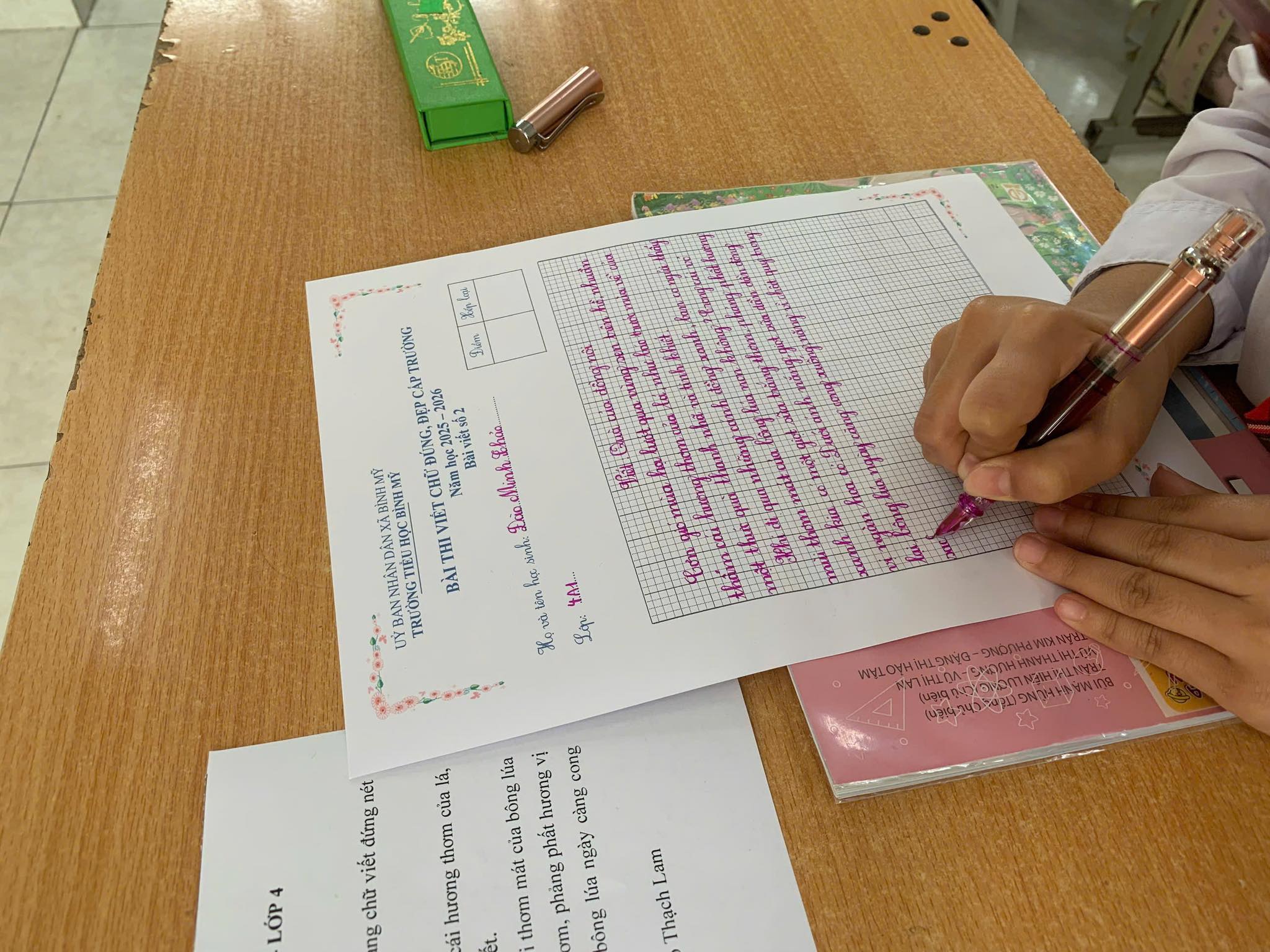 Không chỉ các em đâu nhé, các cô giáo cũng đã “trình làng” những dòng chữ bay bổng, mẫu mực, minh chứng cho tinh thần tự học và giữ gìn nét chữ Việt. Đây không chỉ là một cuộc thi, mà còn là dịp để thầy và trò cùng nhau chia sẻ niềm đam mê, rèn luyện tính cẩn thận, kiên trì và thẩm mỹ.