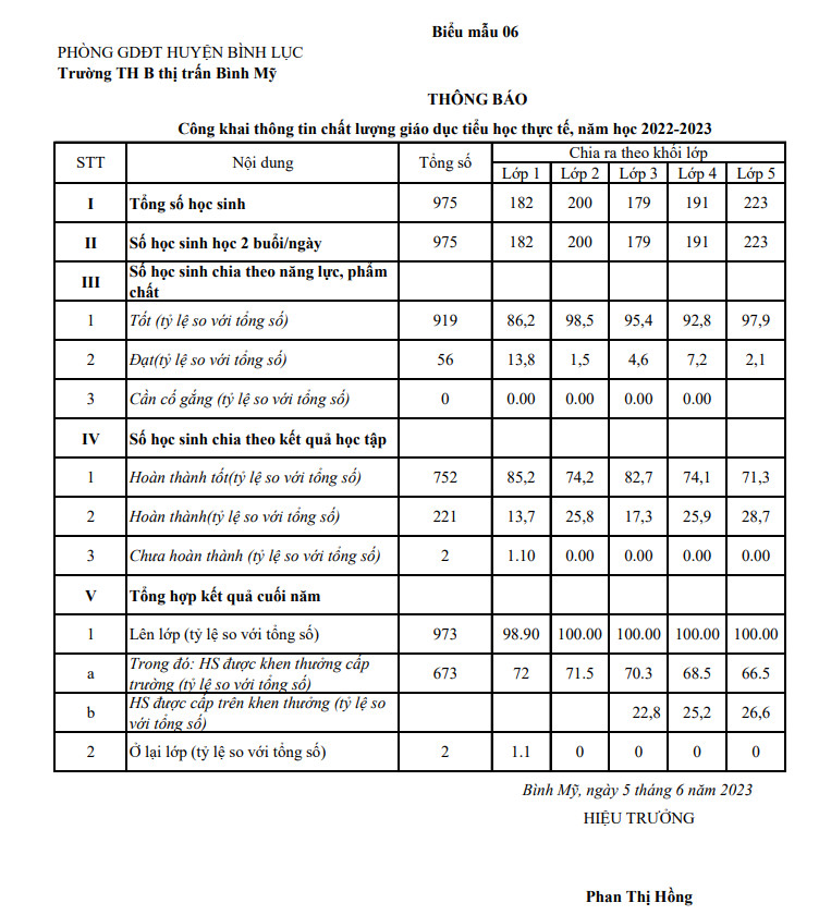 Trường TH B Bình Mỹ thực hiện công khai thông tin năm học 2024-2025