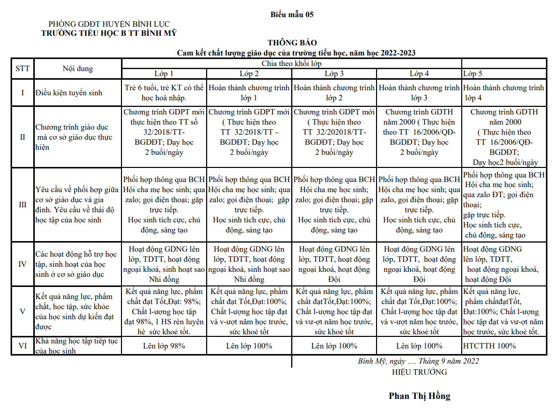 Trường TH B Bình Mỹ thực hiện công khai thông tin năm học 2024-2025