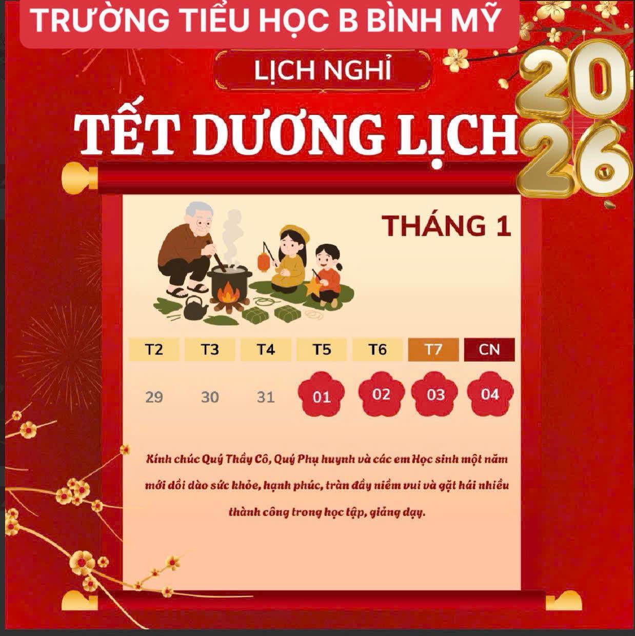 Thông báo lịch nghỉ tết dương lịch 2026