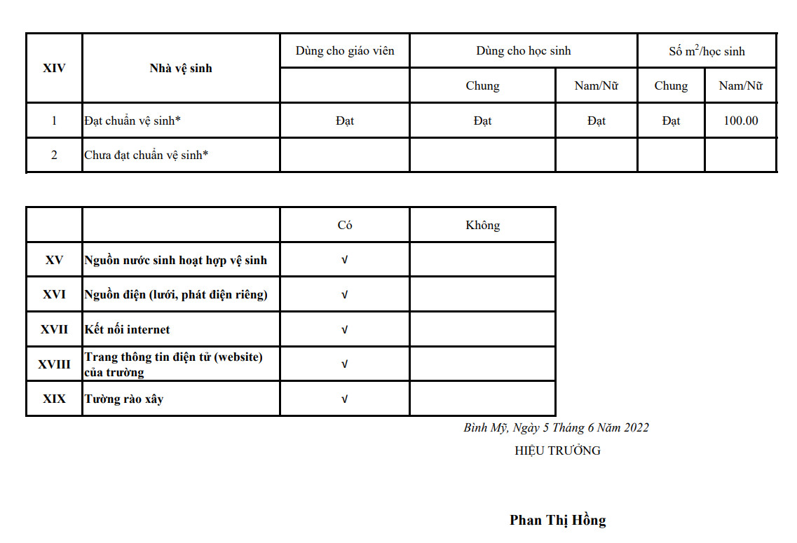 Trường TH Bình Mỹ công khai các khoản thu dịch vụ ngoài học phí năm học 2025-2026